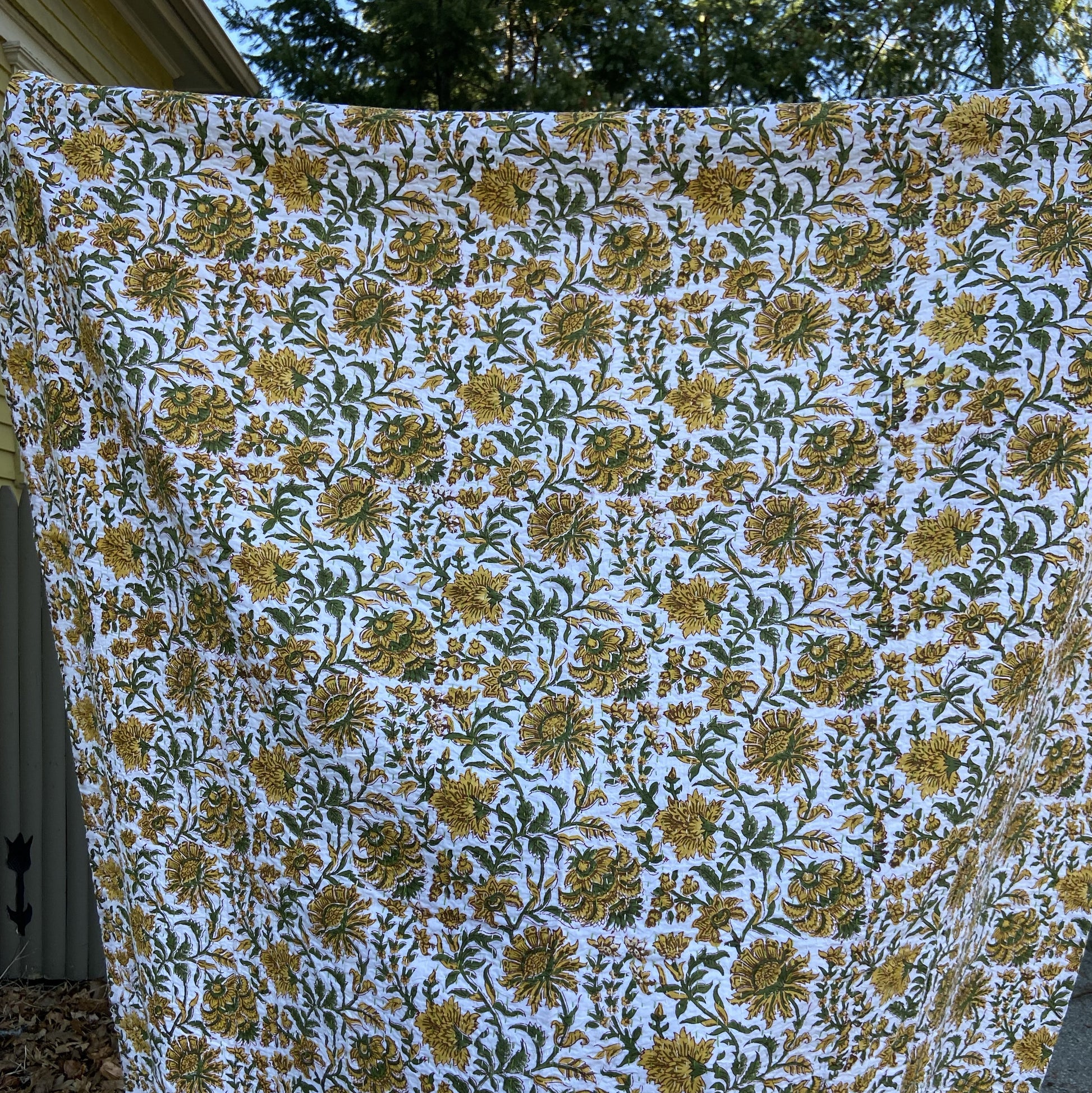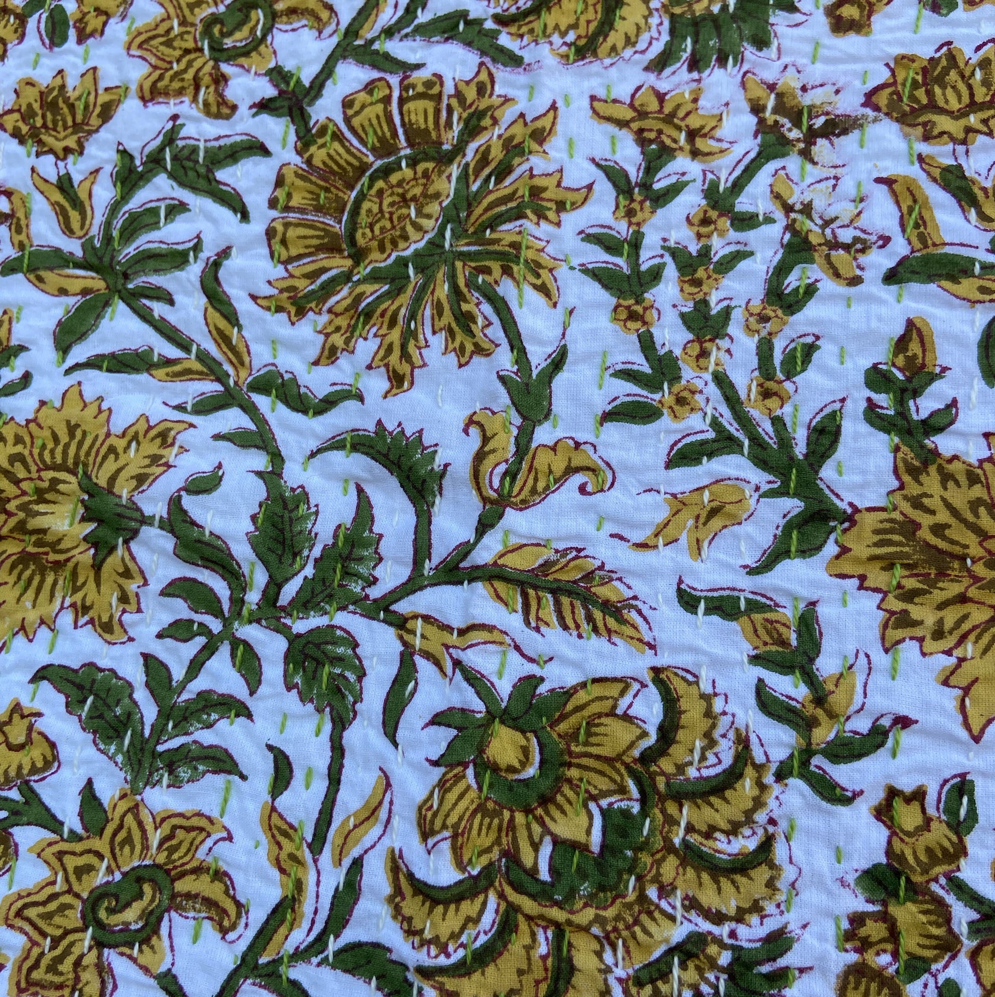 This beautiful, handmade Kantha quilt was crafted by a family owned business in India. One of our best sellers for over 10 years, these quilts are perfect as bed coverings, table cloths, or sofa throws! Made of two layers of 100% cotton and handprinted with vegetable dyes.