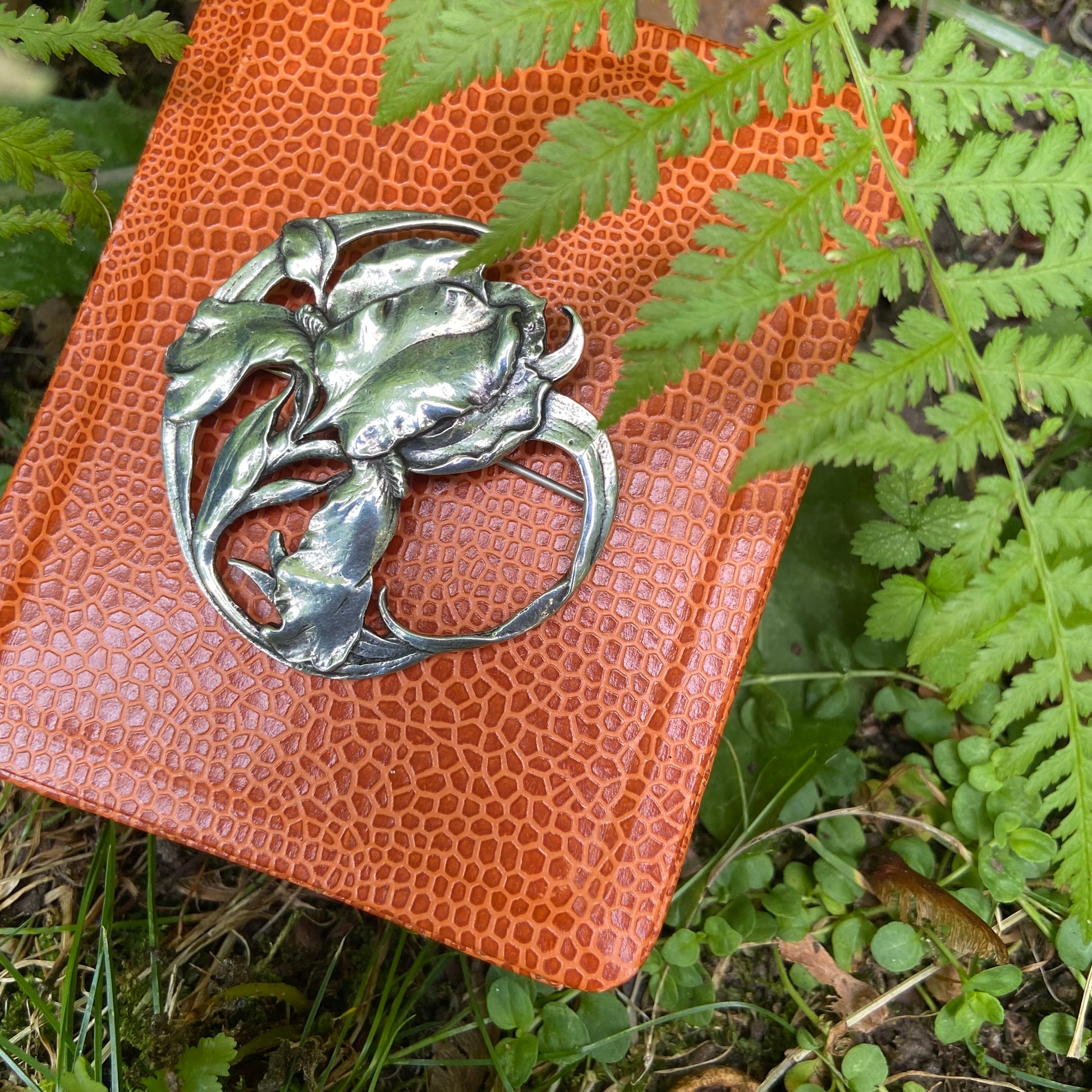 Vintage Sterling Art Nouveau Iris Brooch Pin
