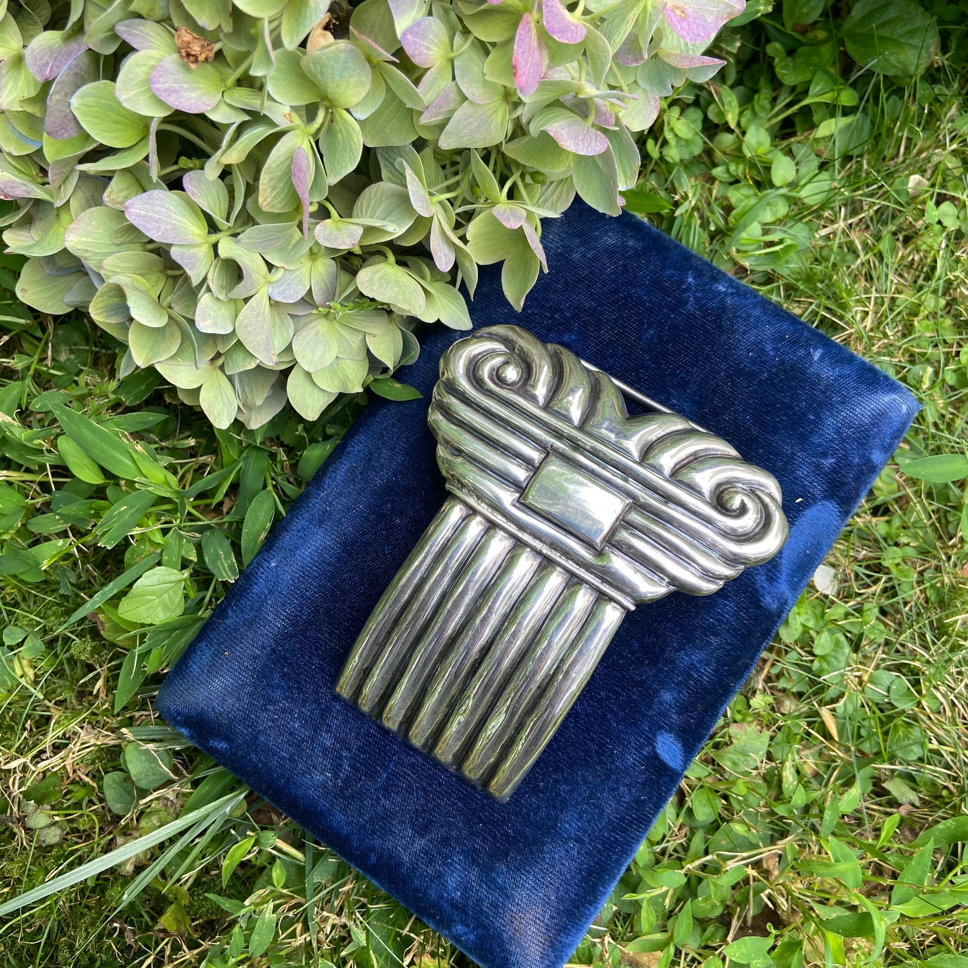 Here is a very rare repousse sterling belt buckle depicting a Grecian column. “Sterling Lico Mexico” stamp on the back, 1960’s